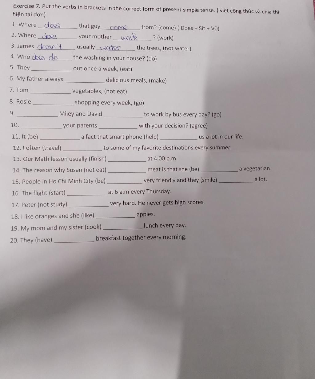 1. does / come