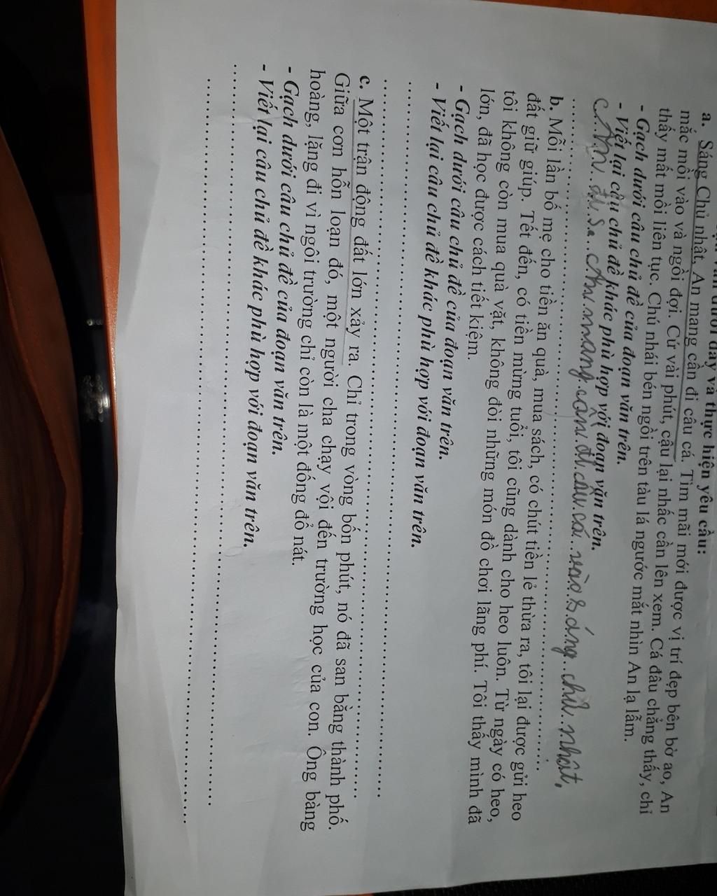 -> Câu chủ đề : Một trận động đất lớn xảy ra .