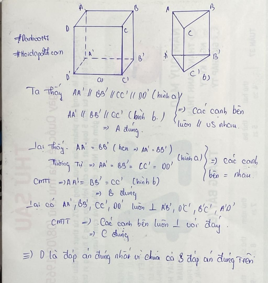 $\rightarrow$ Các cạnh bên của hình lăng trụ đứng tứ giác , tam giác thì luôn vuông góc với hai đáy