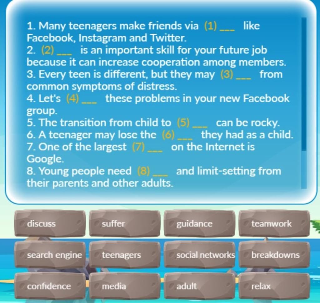 facebook, instagram,..=> social nerworks: mạng xã hộ