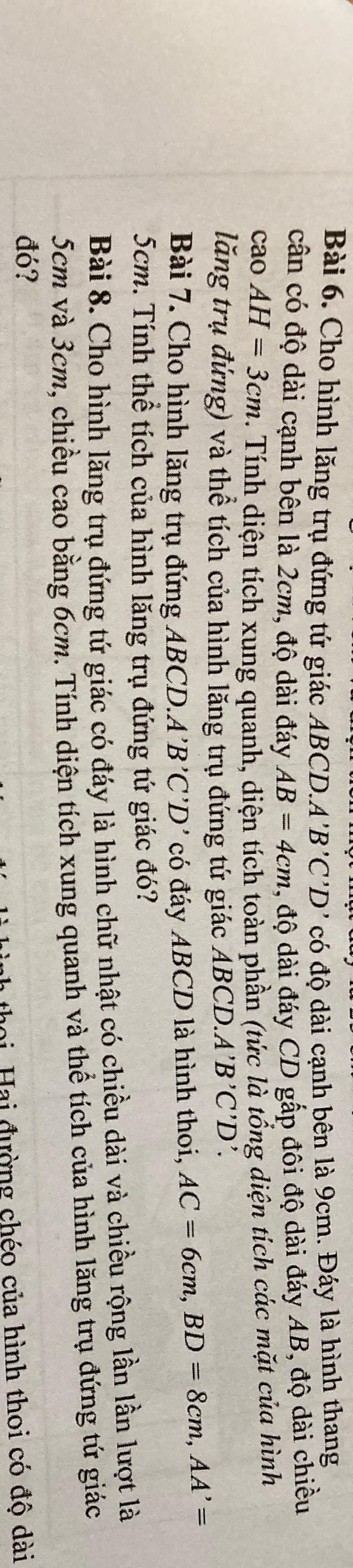 Thể tích của hình lăng trụ đứng tứ giác là: