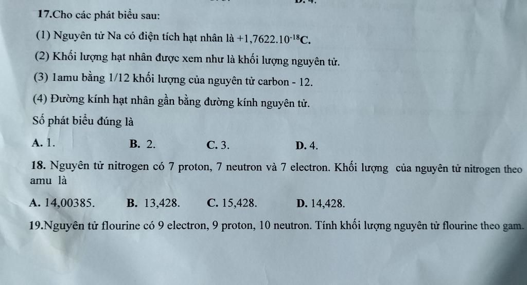 `=>` khối lượng nguyên tử có thể cho bằng tổng khối lượng của proton và neutron hay cũng bằng khối lượng của hạt nhân