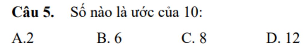`D.12` lớn hơn `10` nên không thể là ước của `10`
