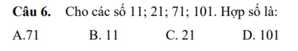 Ta có: `71;11;21;101` đều lớn hơn `1` nên xét ước