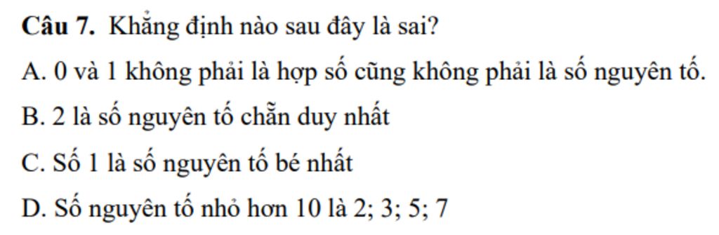 `->` Vì số `1` là số nguyên tố `(` giải thích ở đáp án `A` `)`