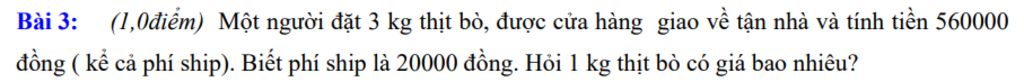 Số tiền đặt mua `3kg` thịt bò (không kể tiền ship) là: