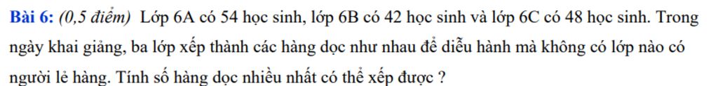 Vậy có thể xếp được nhiều nhất `6` hàng dọc.