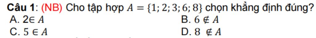 - Các phần tử của tập hợp A là: 1; 2; 3; 6; 8