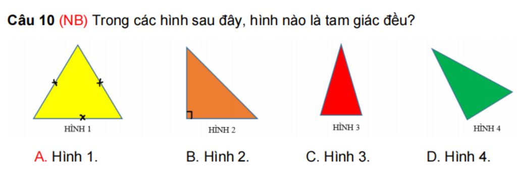 →Trong các hình dưới hình 1 là tam giác đều (có ba cạnh bằng nhau)