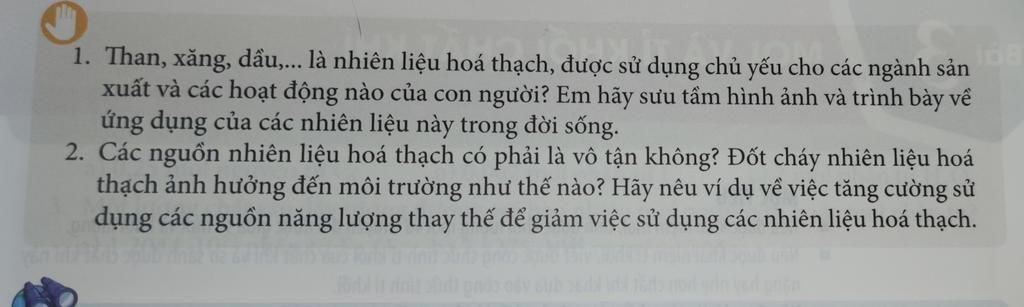 1. Than, xăng, dầu,... là nhiên liệu hoá thạch, được sử dụng chủ yếu cho các ngành sản