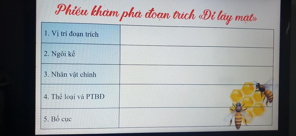 1. Vị trí đoạn trích : Đoạn trích " Đi lấy mật " đc kể lại 1 lần An đi the cha nuôi và Cò đi lấy mật ong ở rừng U Minh ( mình ko hiểu lắm về vị trí đoạn trích )