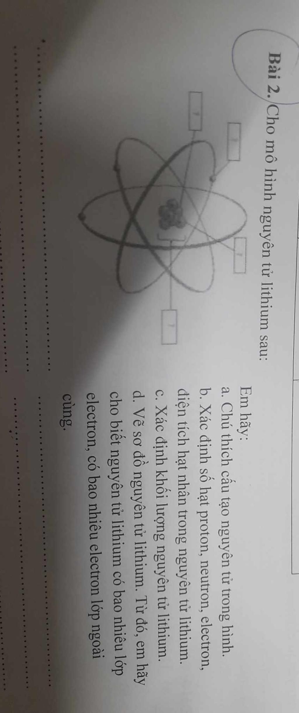 Bài 2. Cho mô hình nguyên tử lithium sau: