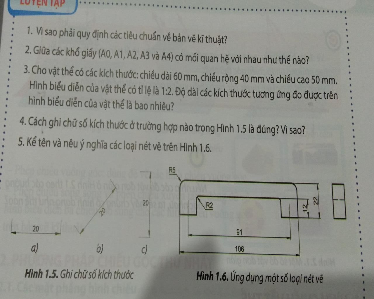 + Hình 1.5b: chữ số kích thước nằm dưới đường kích thước