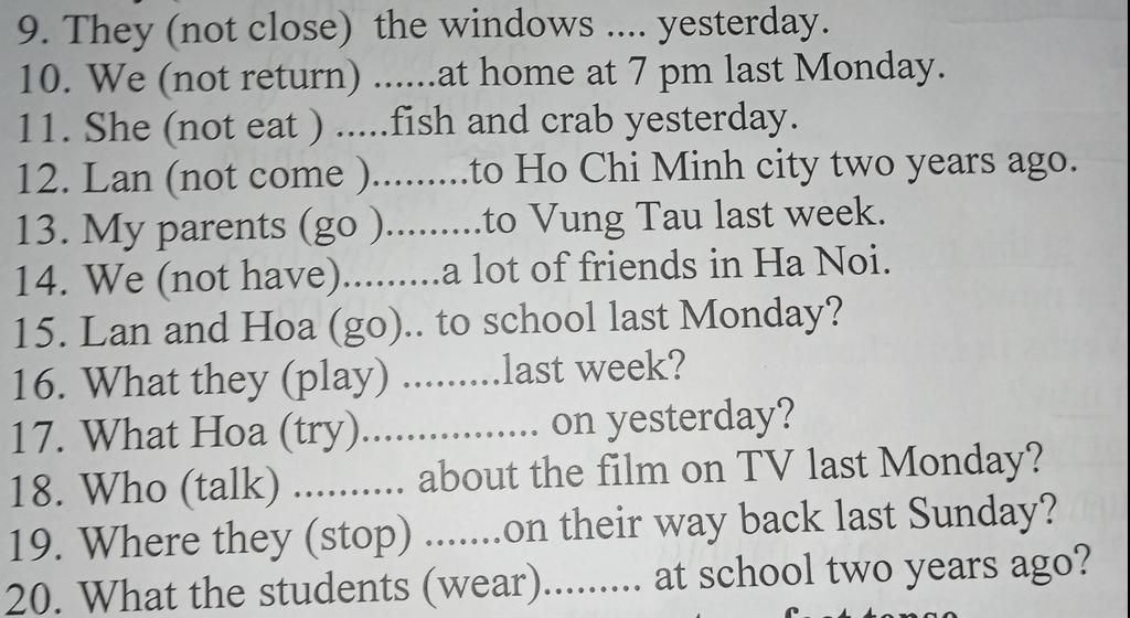 DHNB: ago, last (year, month ...), yesterday, in + năm QK, ...