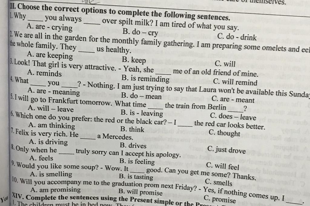 `-` ''mean'' không thể chia tiếp diễn .