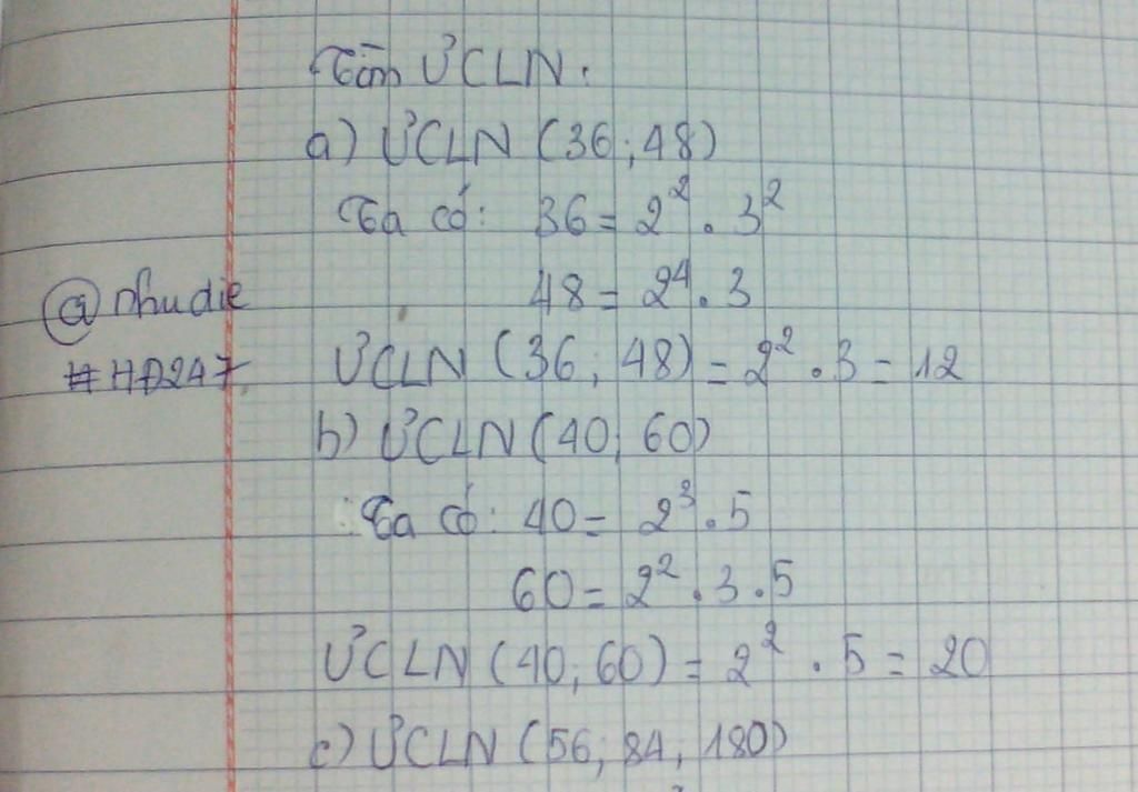 `ƯCLN (36 ; 48) = 2^2 . 3 = 4 . 3 = 12`