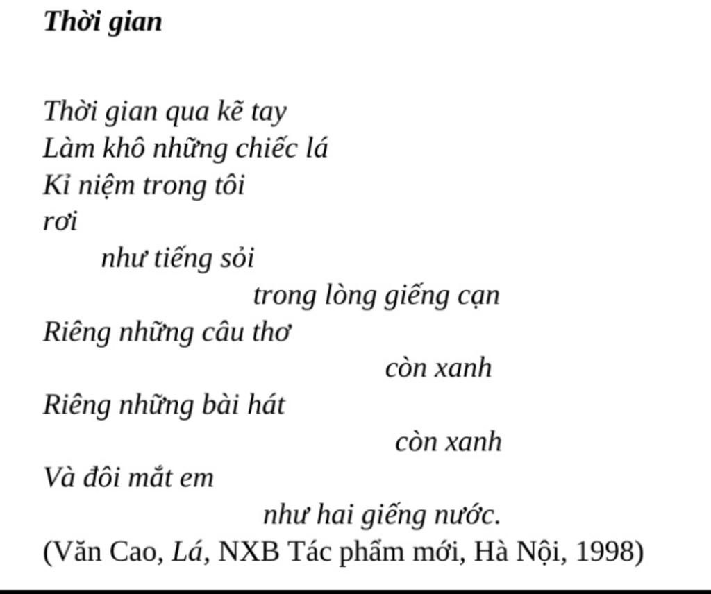 Đồng ý với ý kiến cũng như bài thơ trên . Con người như đang sống cùng thời gian , trong thời gian thấm thoát thoi đưa . Tốc độ dòng thời gian trôi đi trong không gian sống của chúng ta là luôn như nhau, nhưng mỗi người, mỗi lúc lại có các cảm giác và cảm nhận khác nhau là do tâm thế và tinh thần của mỗi người, do những hoàn cảnh và tác động khác nhau từ môi trường sống . Con người bỏ mặc thời gian , không nghĩ tới nó sẽ khiến cuộc sống như "giếng cạn" chẳng còn ý nghĩa gì cả .