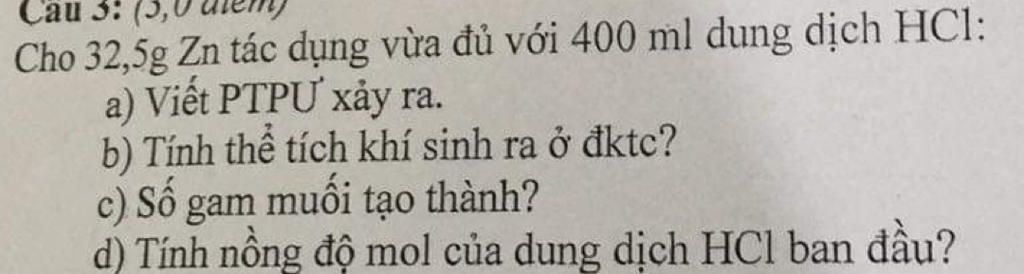 Theo PT: `n_{ZnCl_2}=n_{H_2}=n_{Zn}=0,5(mol)`