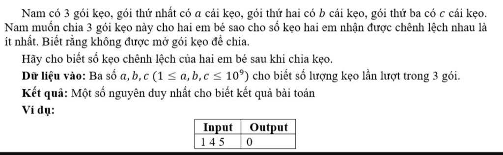 `*` `3` gói kẹo với số lượng lần lượt là `a, b, c`
