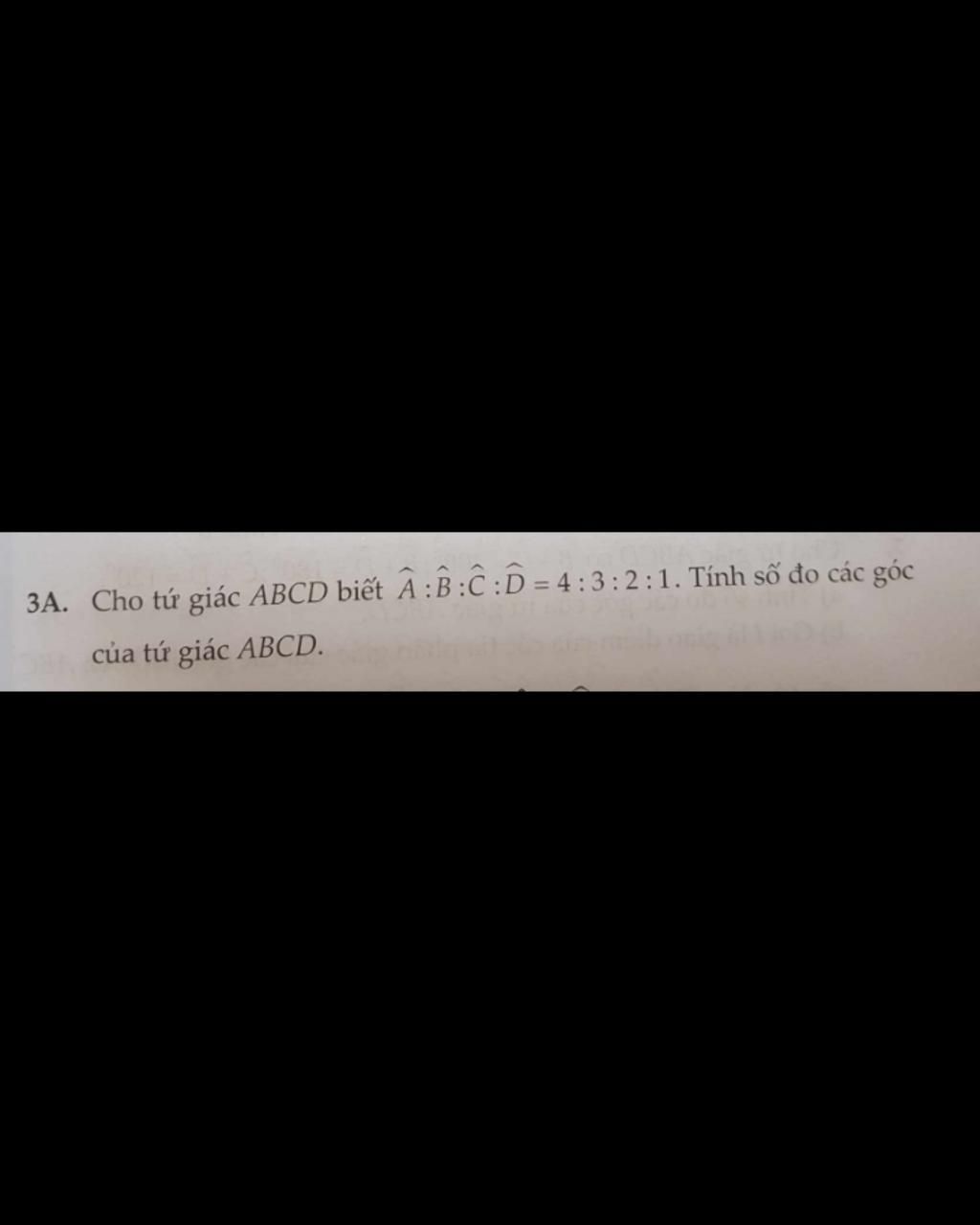 Ta có: `\hat{A}:\hat{B}:\hat{C}:\hat{D}=4:3:2:1`