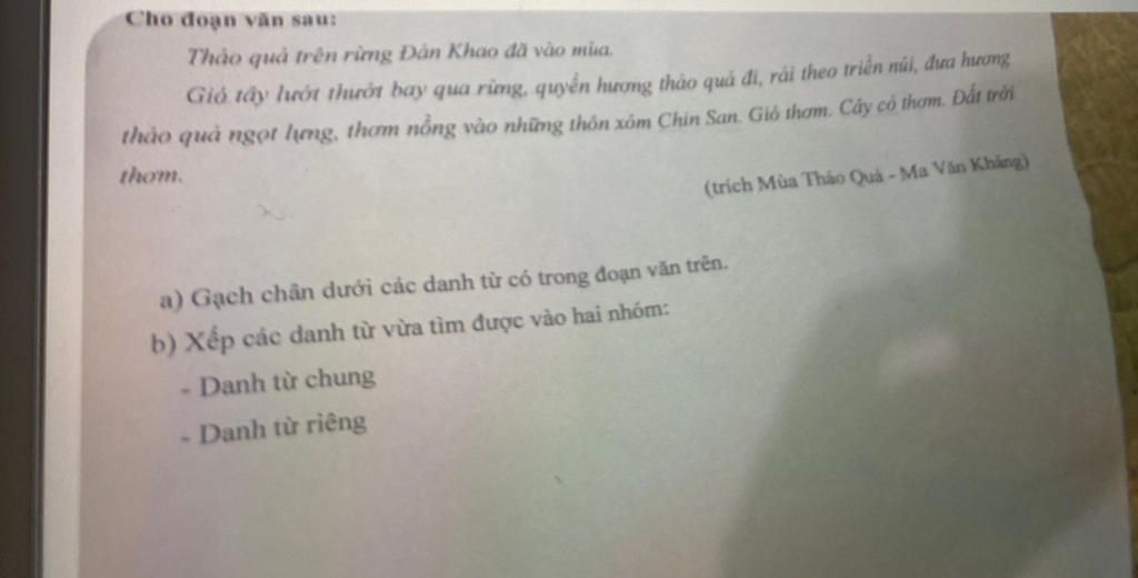 a) Gạch chân dưới các danh từ có trong đoạn văn trên
