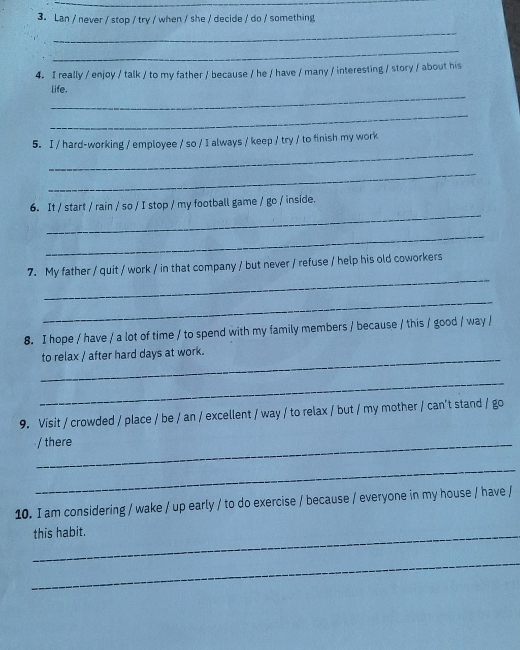 3. Lan / never/stop/ try/when/she/ decide / do / something