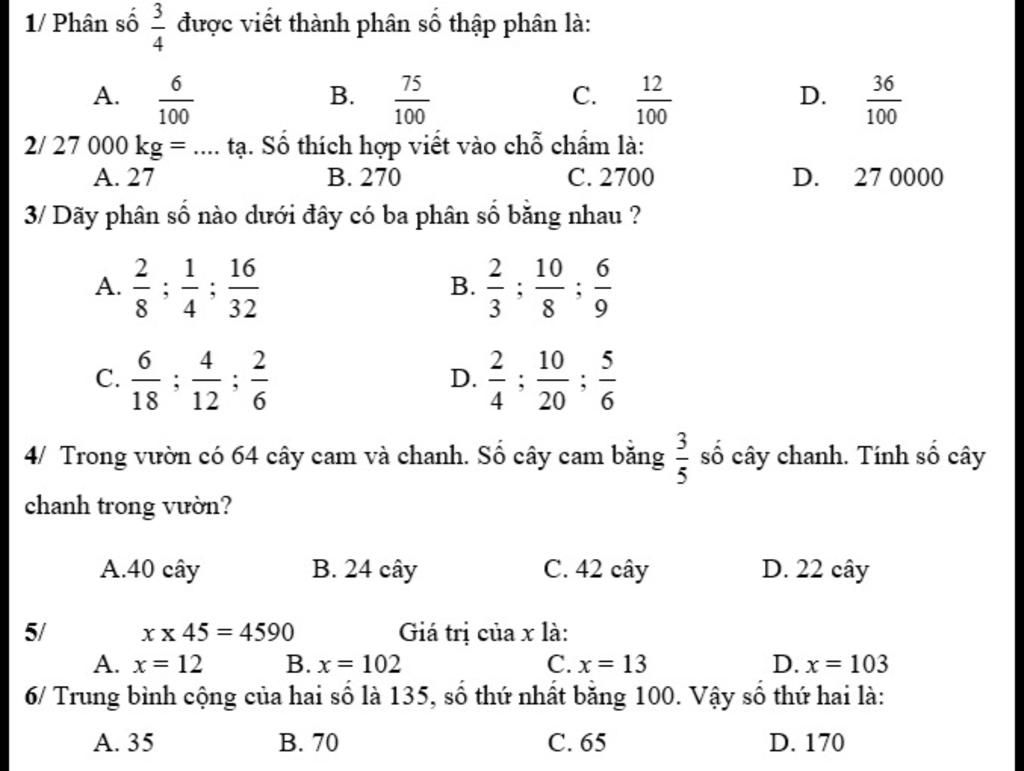1:B 3/4= 3×25/4×25=75/100