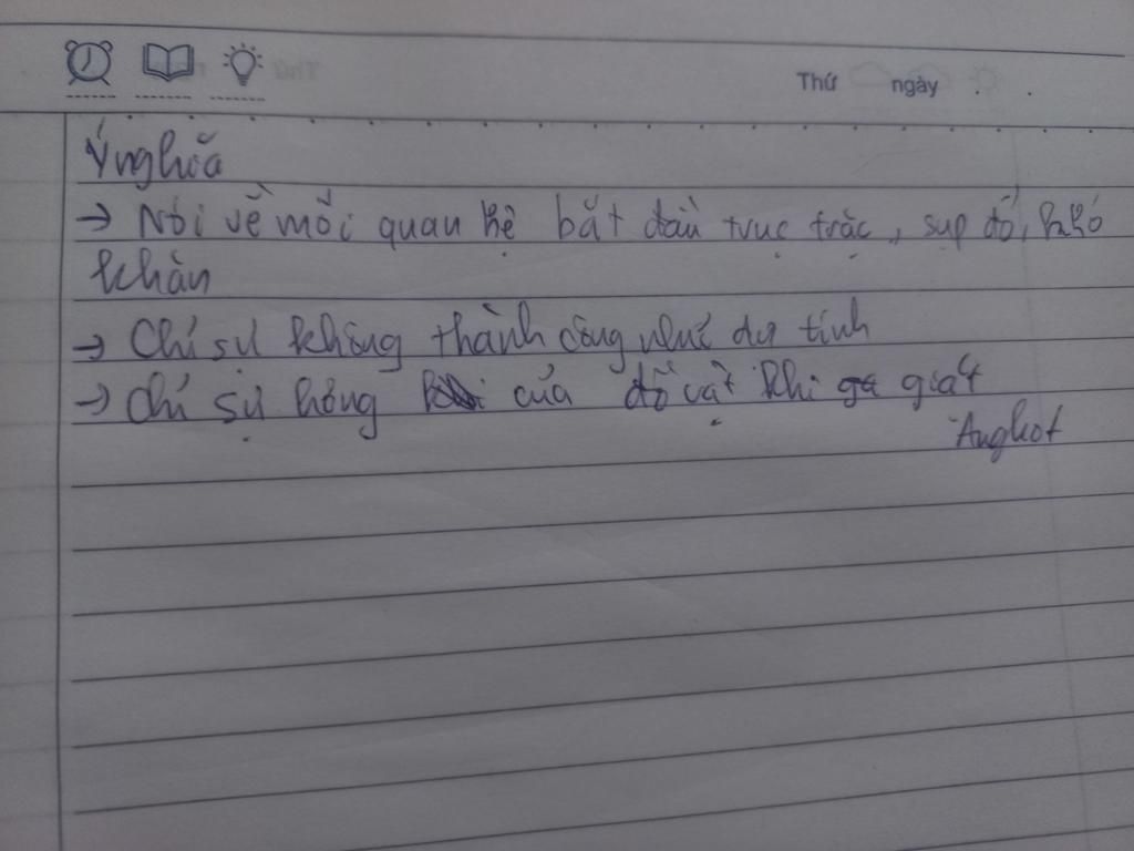 - fell apart in the wash ( nghĩa bóng ) : đổ vỡ , sụp đổ ( diễn tả 1 cái gì đó không như mong muốn như trong hôn nhân , kế hoạch )