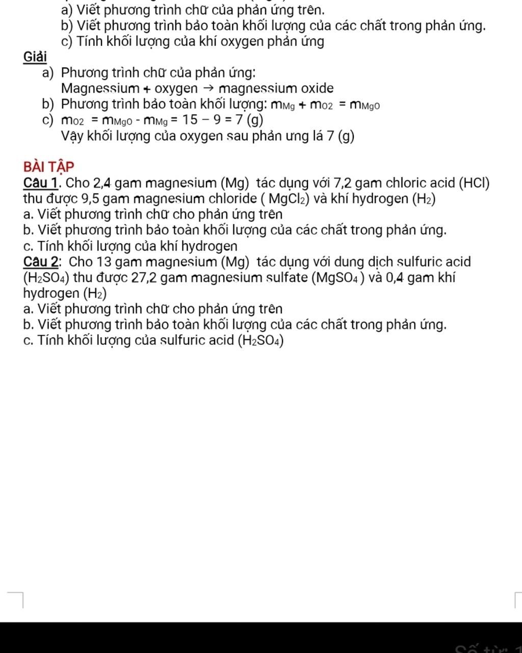 `-> m_(H_2)=m_(Mg)+m_(HCl)-m_(MgCl_2)` `= 2,4 + 7,2-9,5` `= 0,1(g)`