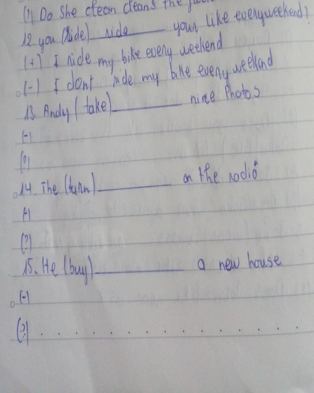 `13.` Vì Andy là danh từ số ít`->` V chia `-s`