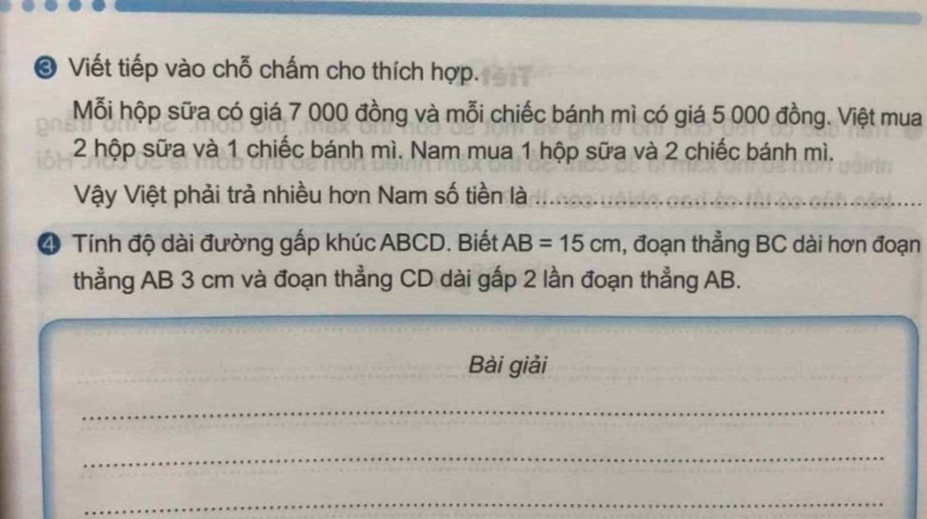 Việt mua `2` hộp sữa và 1 chiếc bánh mì có giá tiền là :