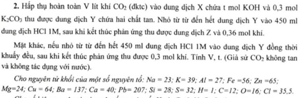 Bảo toàn K: `n_{KOH}+2n_{K_2CO_3\ bd}=2n_{K_2CO_3}+n_{KHCO_3}`