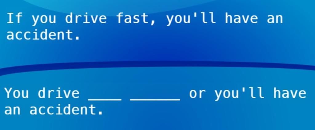 `->` Bạn lái xe một cách chậm rãi hoặc bạn sẽ bị tai nạn