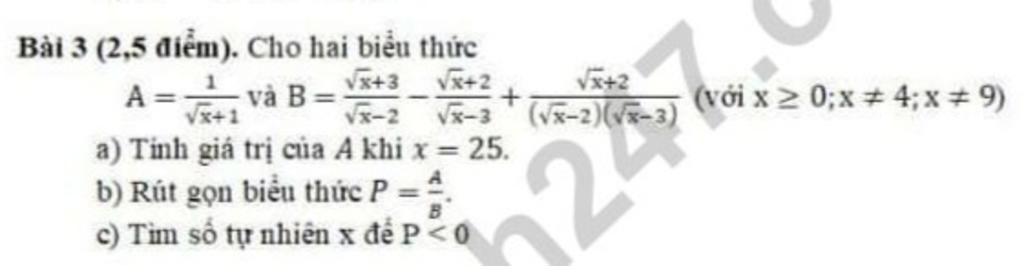 Bài 3 (2,5 điểm). Cho hai biểu thức