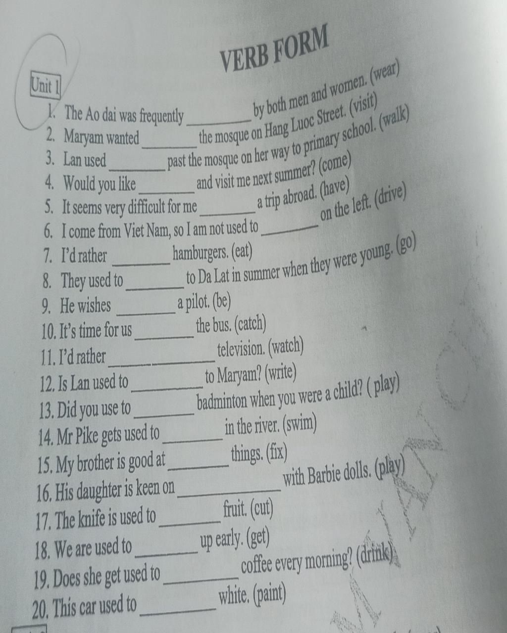 - (?) Did + S + use to + V : ai đó đã từng làm gì chưa?