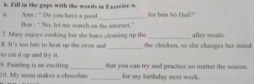 b. Fill in the gaps with the words in Exercise a.