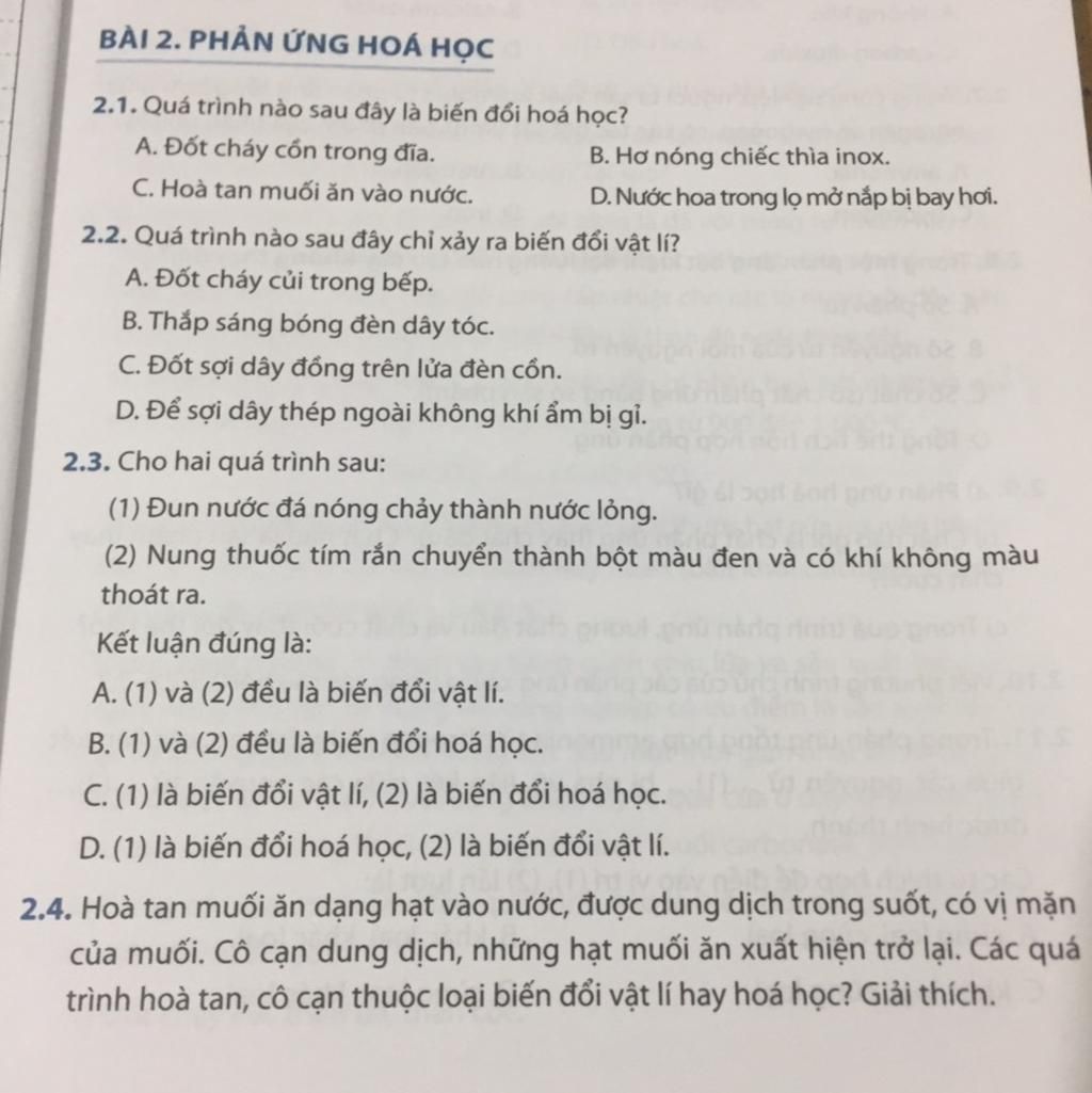 (1) là biến đổi vật lí do không có sự tạo thành chất mới.