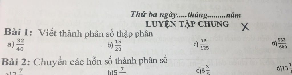 `c)` `13/125` `=` $\dfrac{13 × 8}{125 × 8}$ `=` `104/1000`