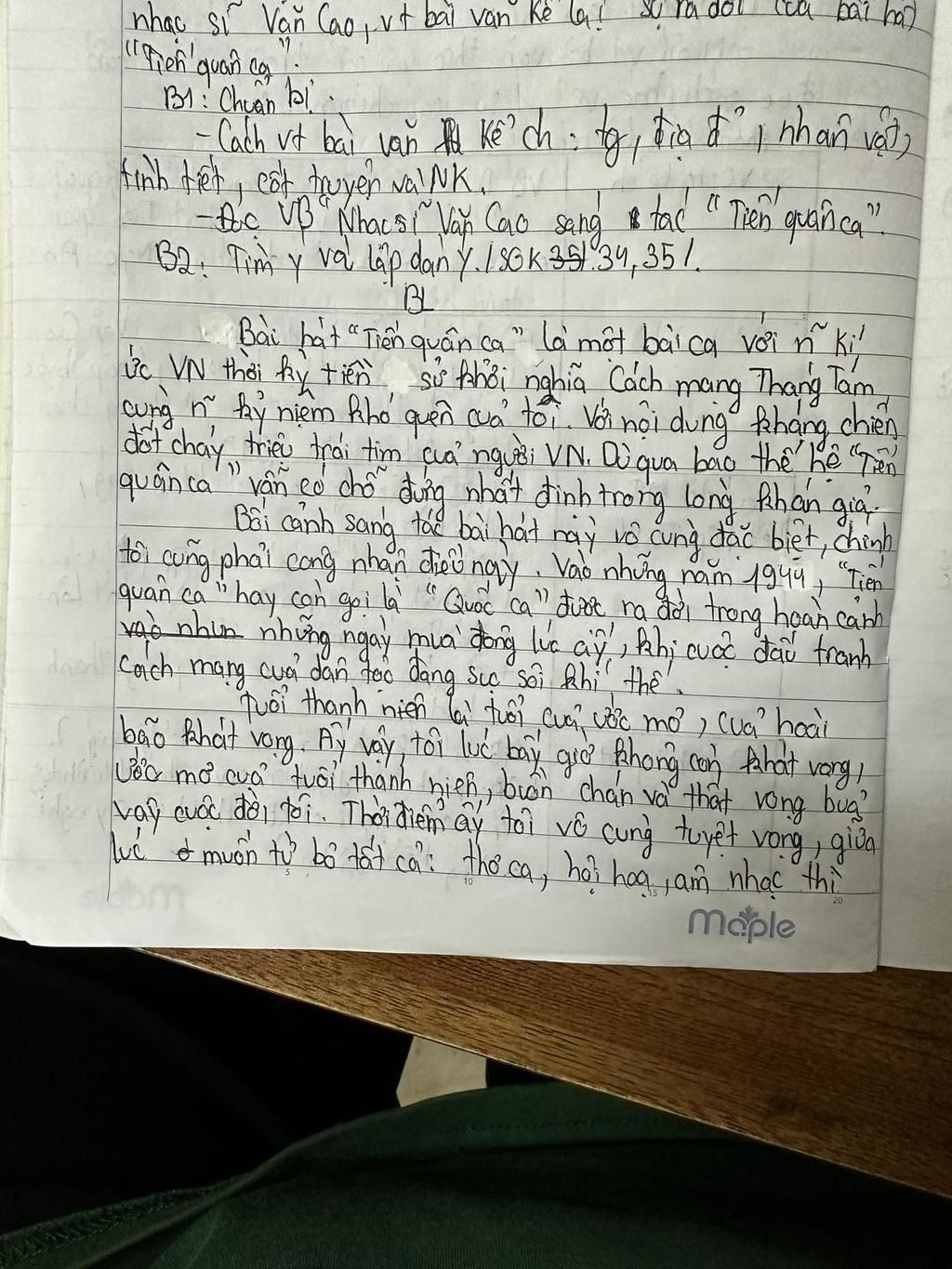Đề 2: Dựa vào văn bản ở mục định hướng ( sgk trang 31, 32 ), em hãy đóng vai nhạc sĩ Văn Cao viết bài văn kể lại sự ra đời của bài hát Tiến quân ca