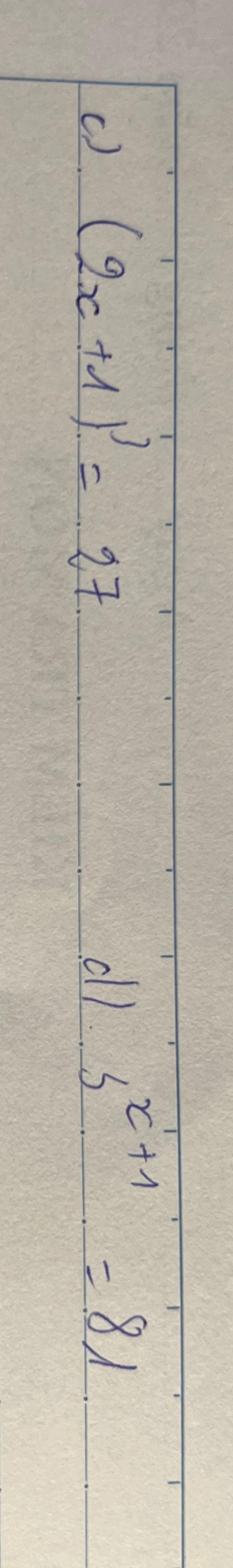 `d)` `3^(x+1) = 81`