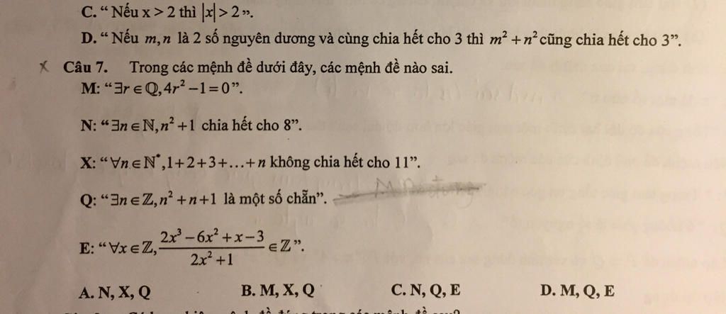 D. “ Nếu m,n là 2 số nguyên dương và cùng chia hết cho 3 thì mẻ +rcũng chia hết cho 3”.