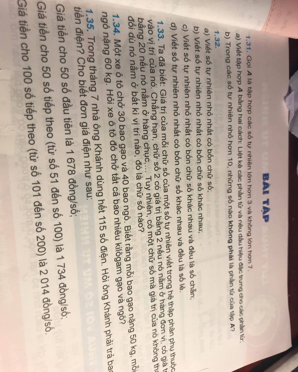 1.31. Gọi A là tập hợp các số tự nhiên lớn hơn 3 và không lớn hơn 7.
