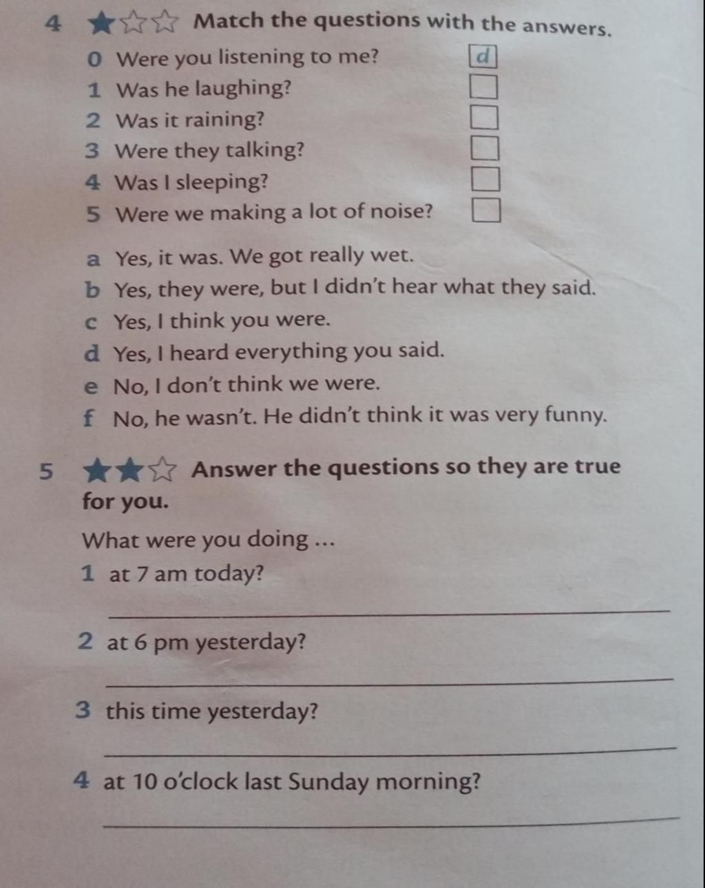 Match the questions with the answers.
