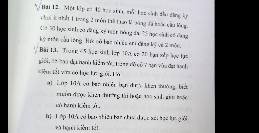 \ Bài 12. Một lớp có 40 học sinh, mỗi học sinh đều đăng ký