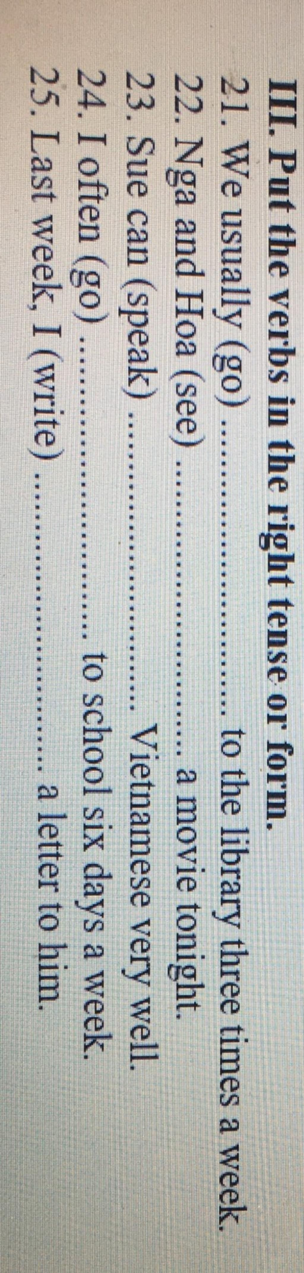 23. Sue can ( speak ) speak Vietnamese very well