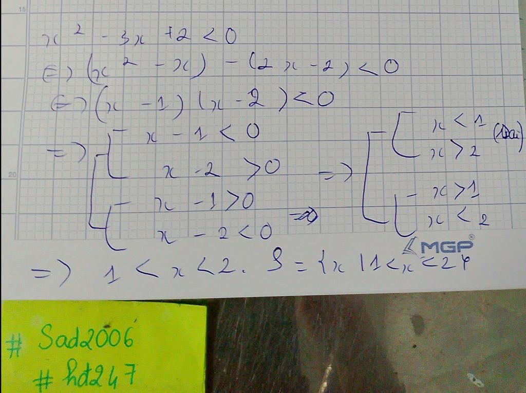`⇔`$\begin{cases}x<1\\x>2\end{cases}$`(Vô` `lí)`
