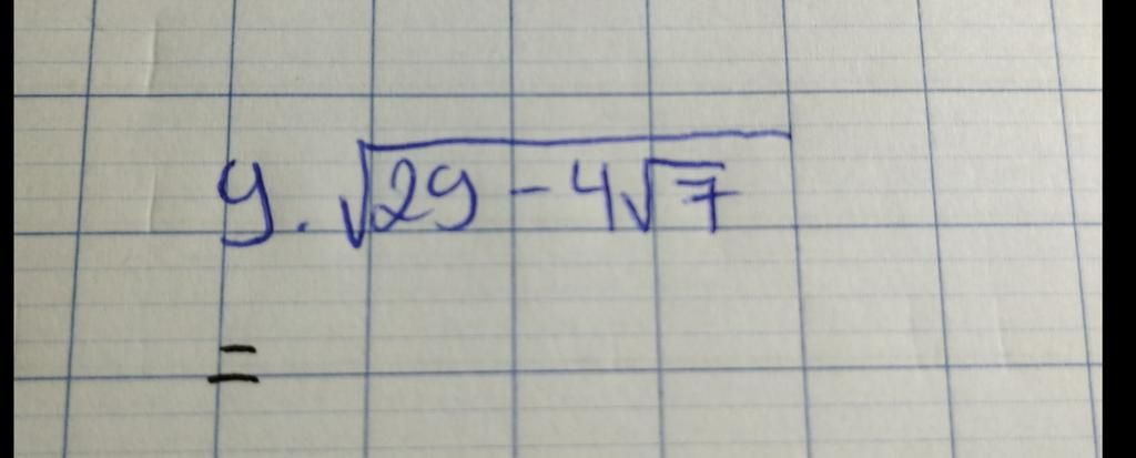`sqrt(29 - 4sqrt(7))= sqrt((2sqrt(7) - 1) ^ 2)= |2sqrt(7) - 1|= 2sqrt(7) - 1`