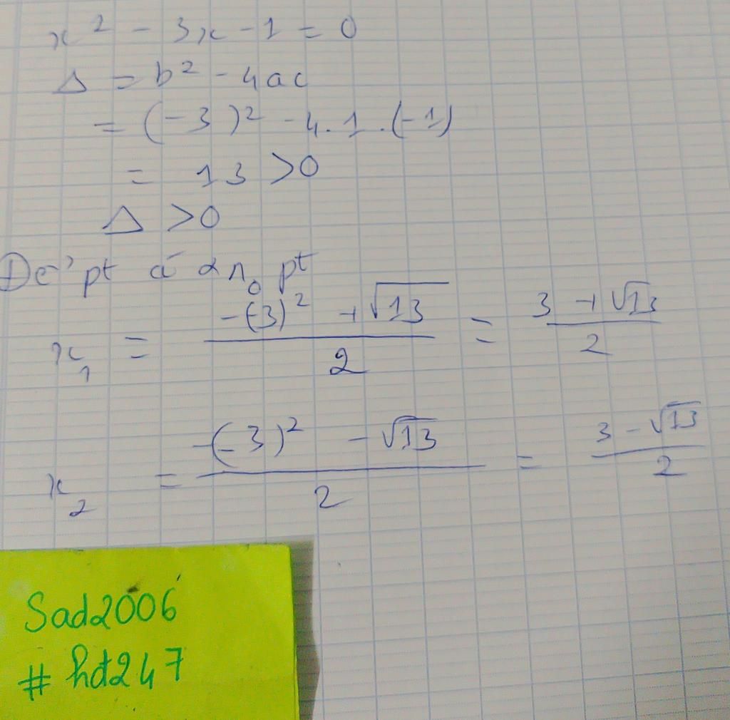 `<=>`\(\left[ \begin{array}{l}x=\dfrac{3-\sqrt{13}}2\\x=\dfrac{3+\sqrt{13}}2\end{array} \right.\)