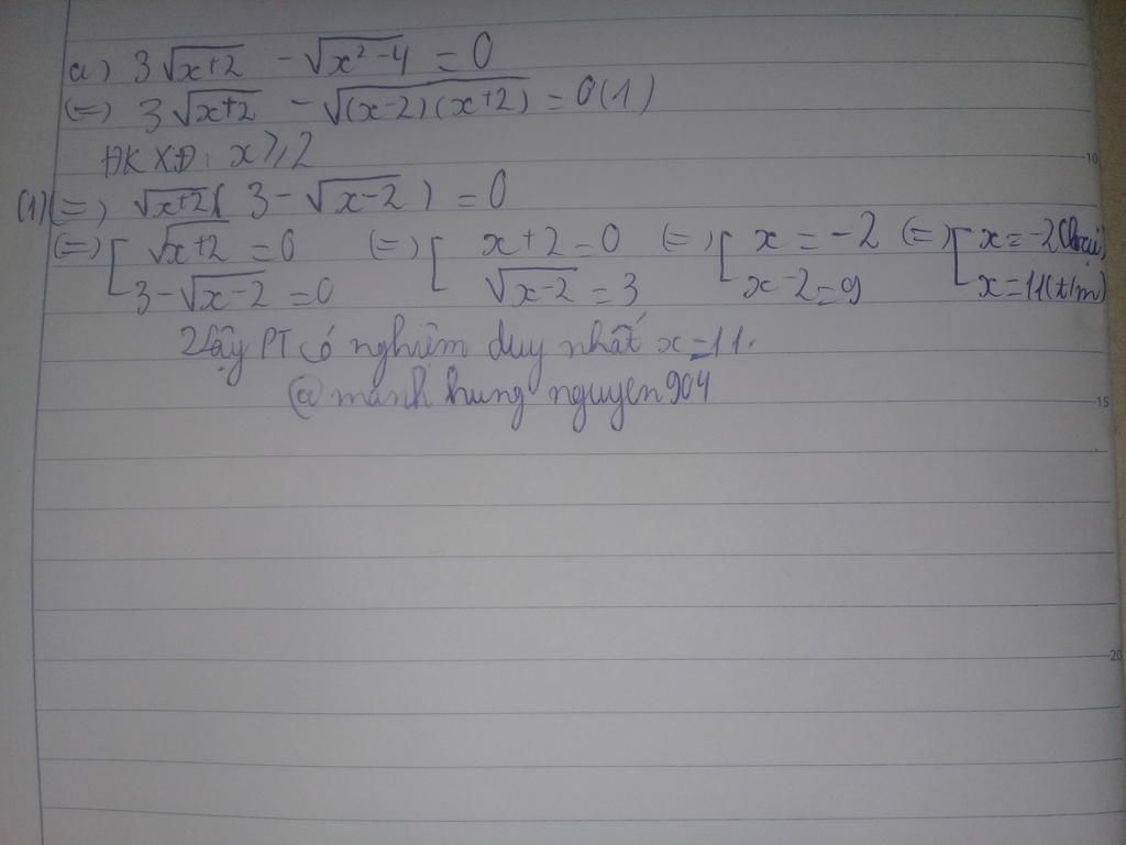 `3\sqrt{x + 2} - \sqrt{x^2 - 4} = 0 ĐKXĐ x ≥ 2`