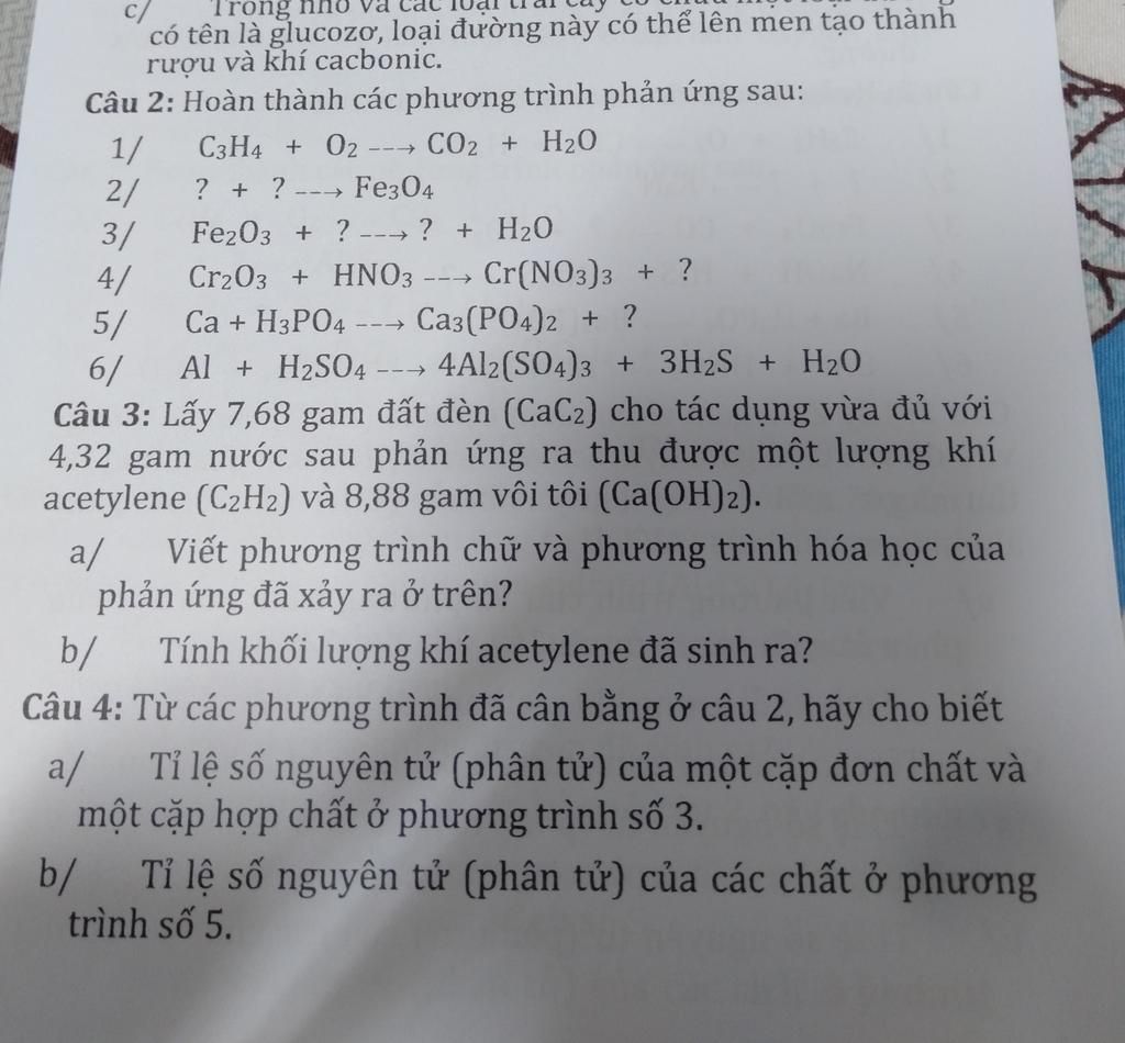 `a.`pt chữ: đất đèn + nước `->` acetylene+ vôi tôi